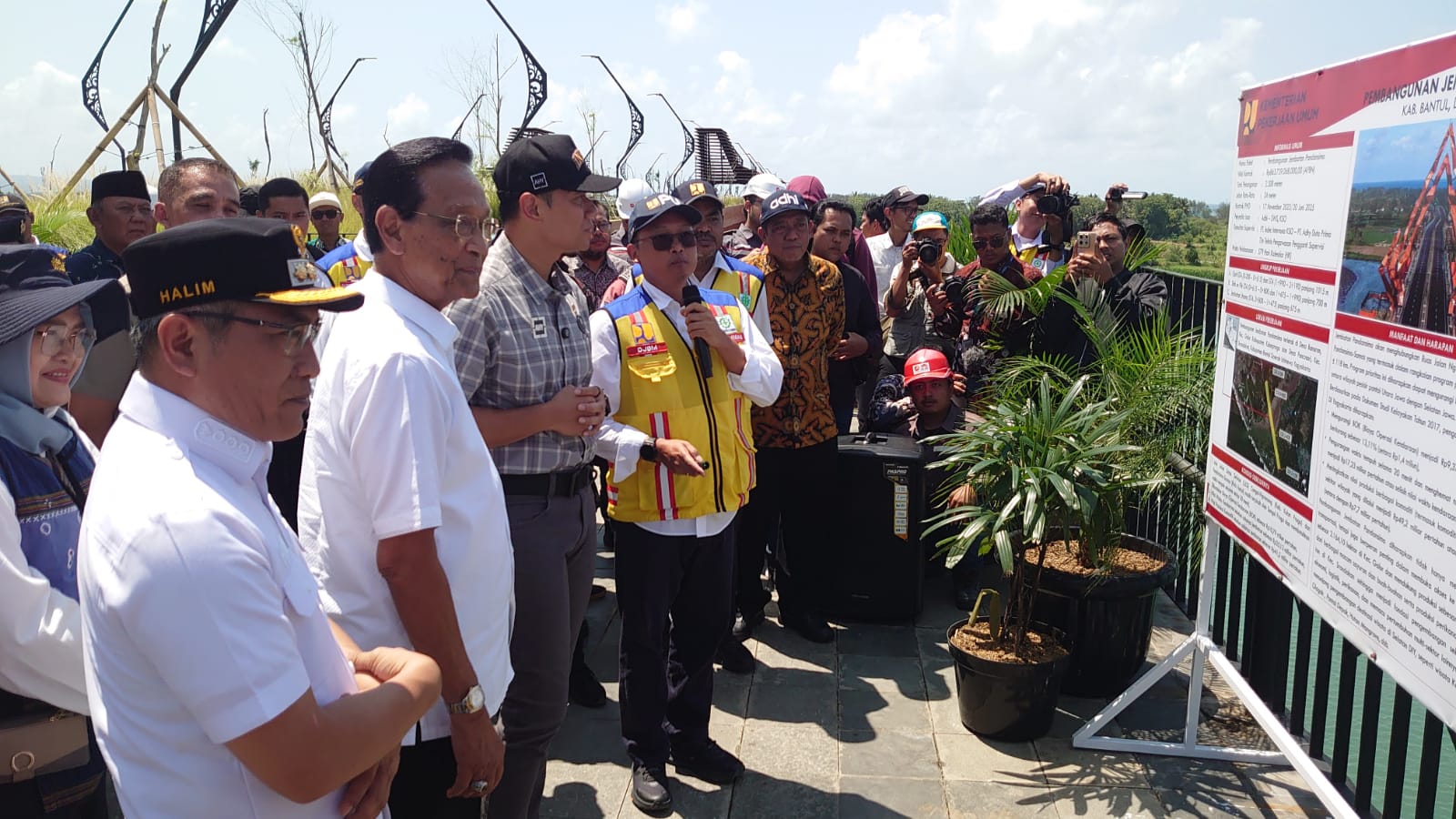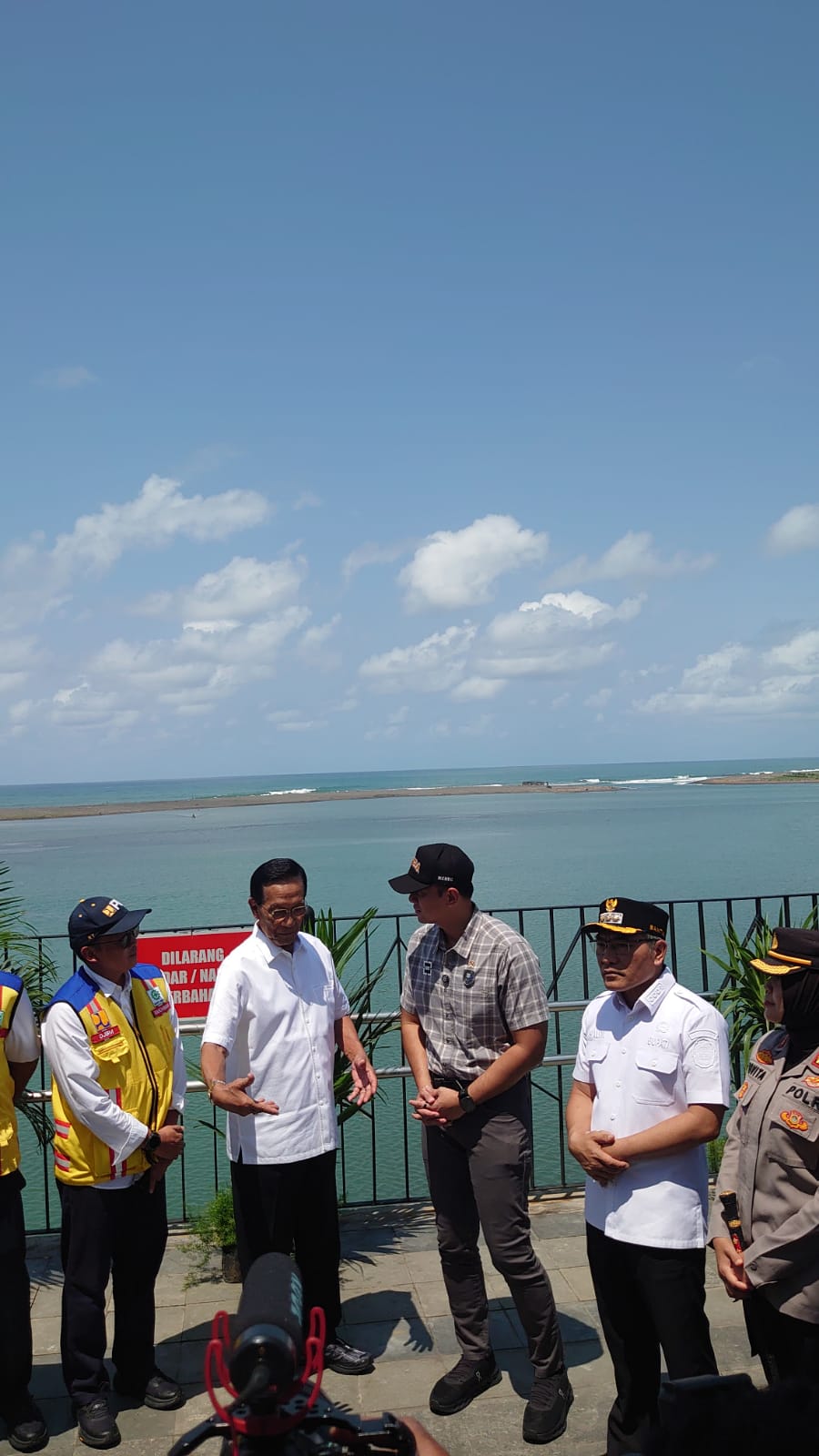 Menteri Koordinator Bidang Infrastruktur dan Pembangunan Kewilayahan, Agus Harimurti Yudhoyono (AHY), bersama Gubernur Daerah Istimewa Yogyakarta, Sri Sultan Hamengkubuwono X, dan Bupati Bantul Abdul Halim Muslih meninjau Jembatan Pandansimo, Kamis (9/10/2025).