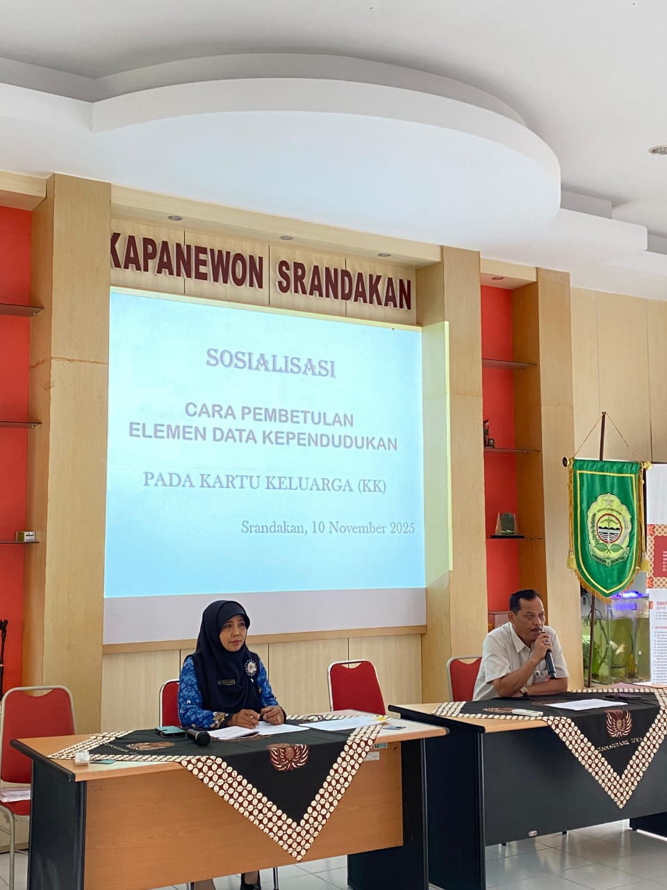 Dukuh adalah orang pertama yang dicari warga untuk tempat bertanya bila membutuhkan pembaharuan administrasi kependudukan. Oleh karena itu Jawatan Pelayanan Umum Kapanewon Srandakan memandang perlu untuk mengadakan sosialisasi administrasi kependudukan bagi Dukuh, khususnya masalah cara pembetulan elemen data kependudukan pada Kartu Keluarga (KK). Kegiatan dilaksanakan di aula Kapanewon Srandakan dengan mengundang seluruh Dukuh dari Kalurahan Trimurti dan Poncosari beserta Tata Laksana, Senin (10/11/2025).